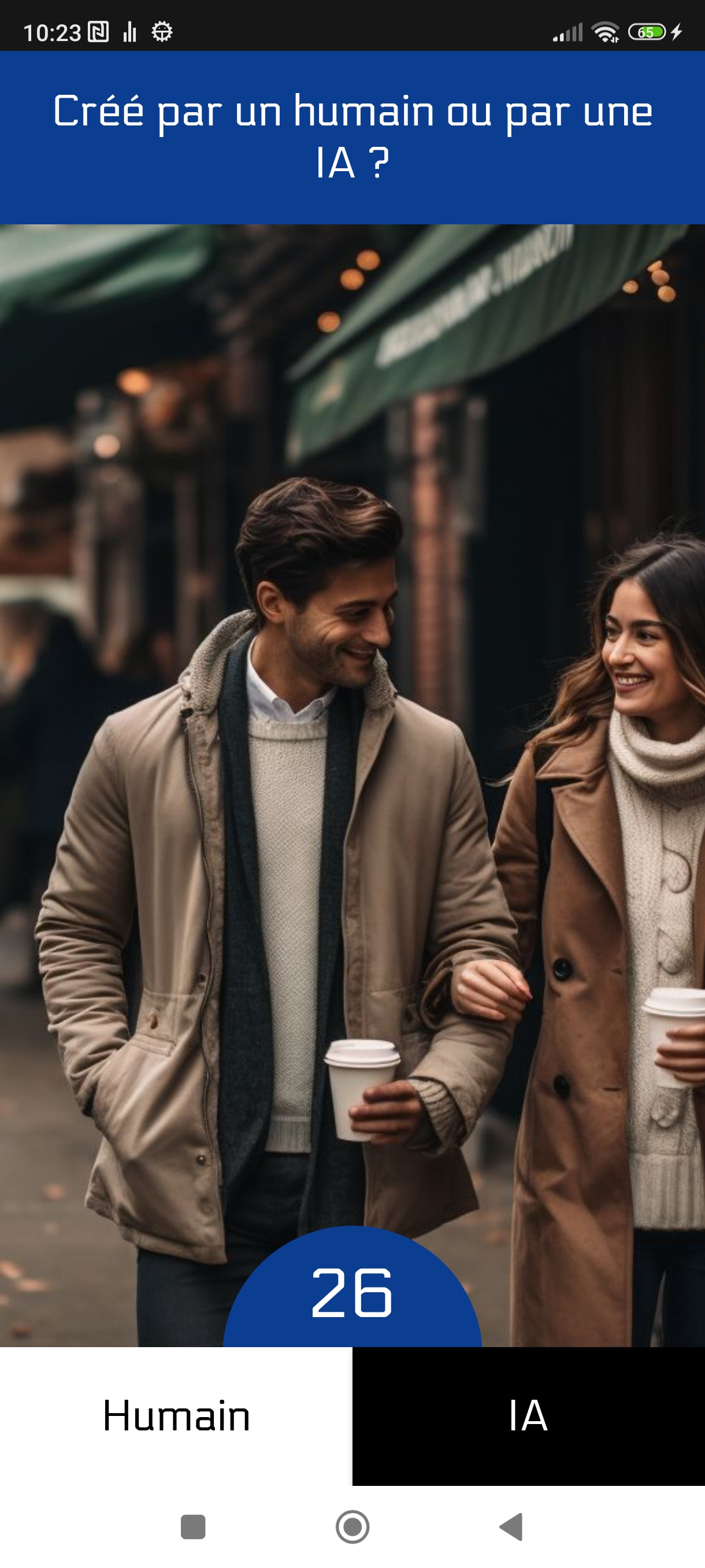 Cette application vous permet de tester votre capacité à distinguer une image réalisée par une IA d'une image réalisée par un humain.