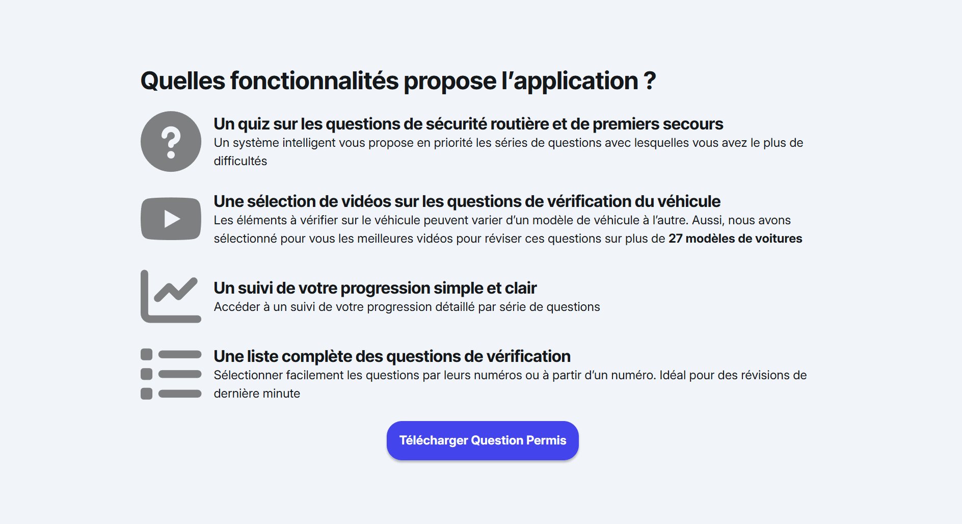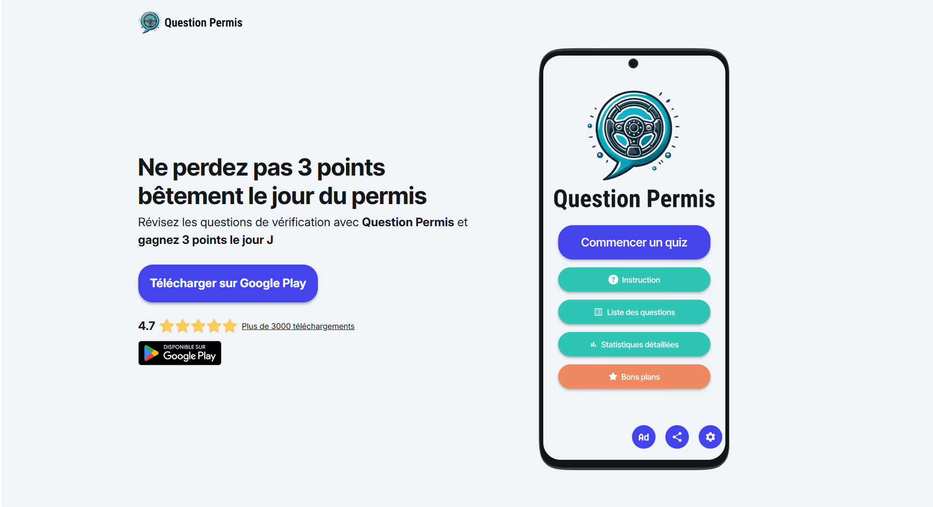 Site internet pour présenter et promouvoir l'application mobile Question Permis.